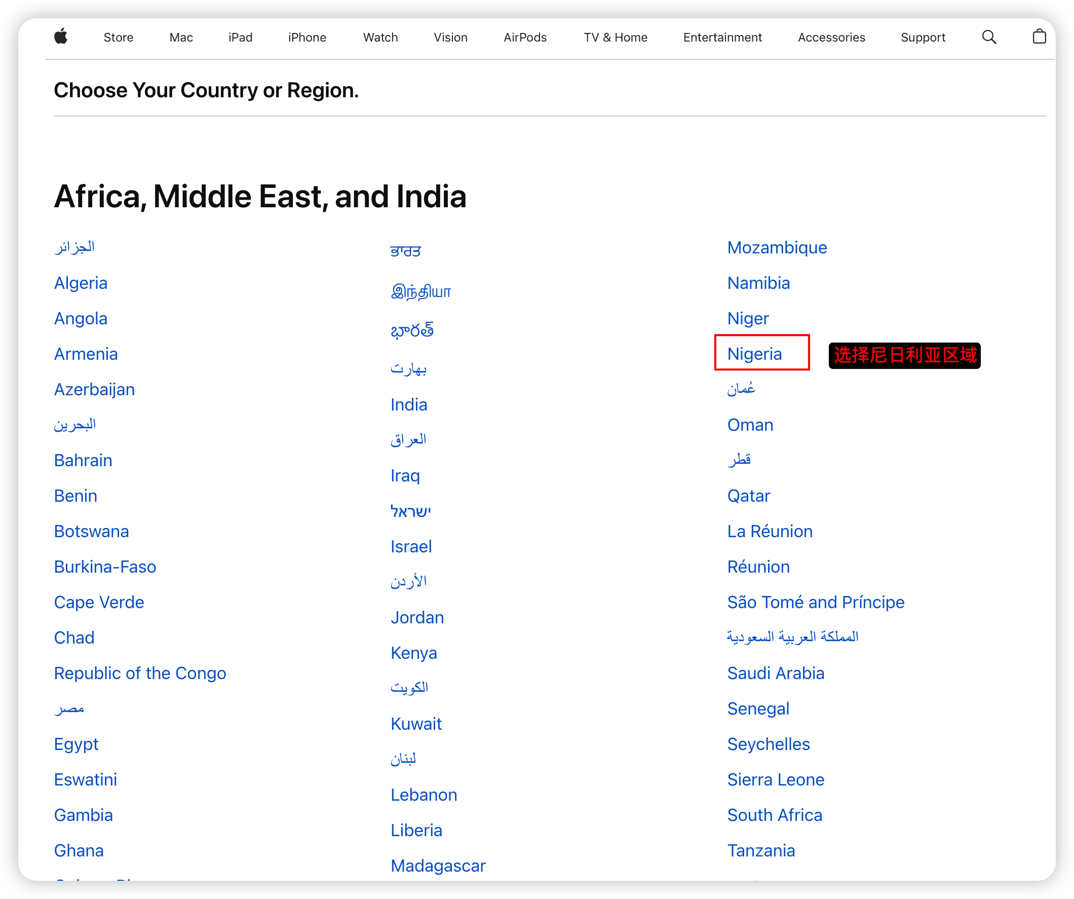 点击 Country/Region,开始修改国家或地区。