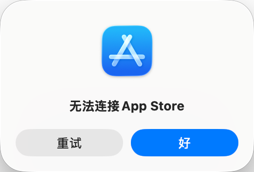 打开后如果出现“无法连接 App Store”,这是正常现象,不代表失败。这个动作的重点是触发 App Store 店面切换。