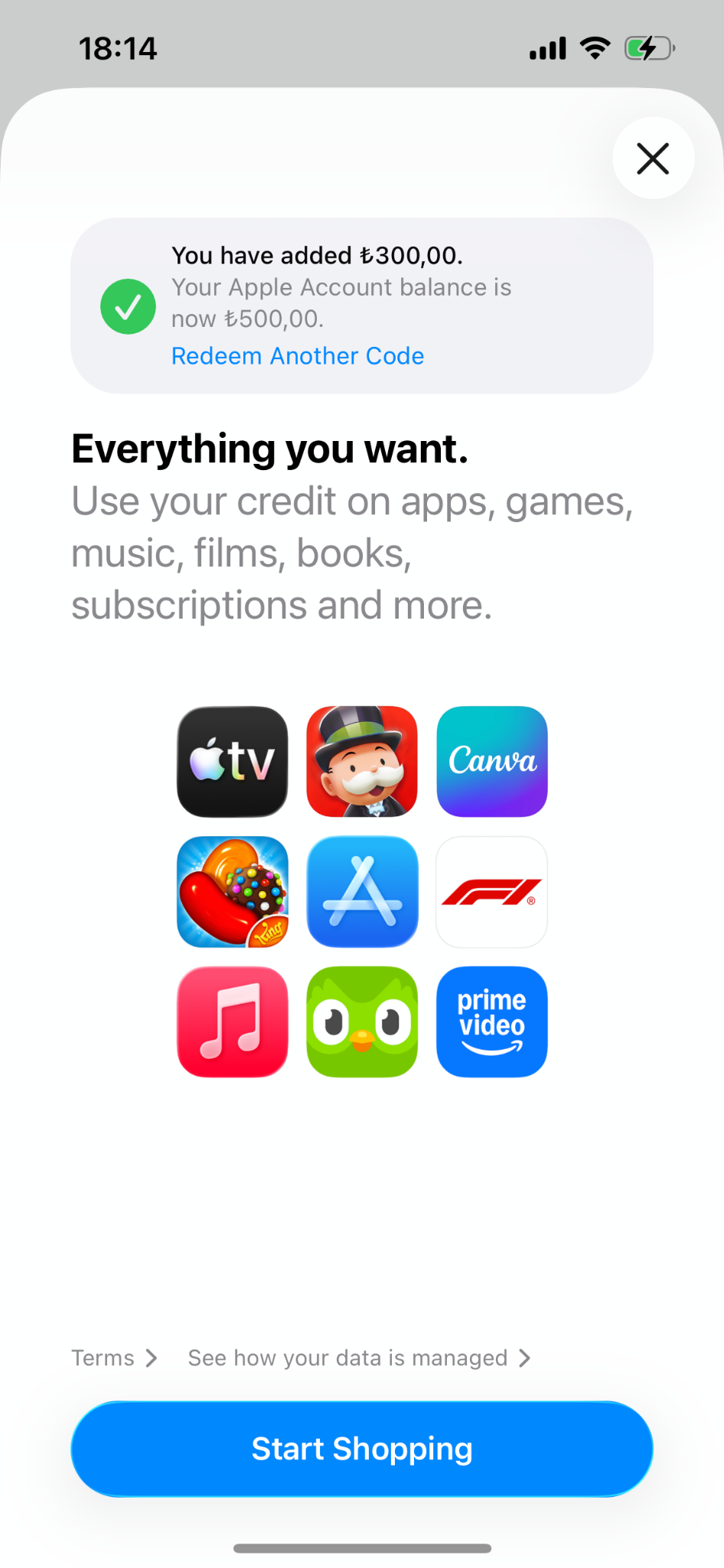 兑换成功后,余额会进入这个土区 Apple ID 的账户余额。后续 App Store 内购、iCloud+、Apple Music 等订阅会优先从余额里扣款。