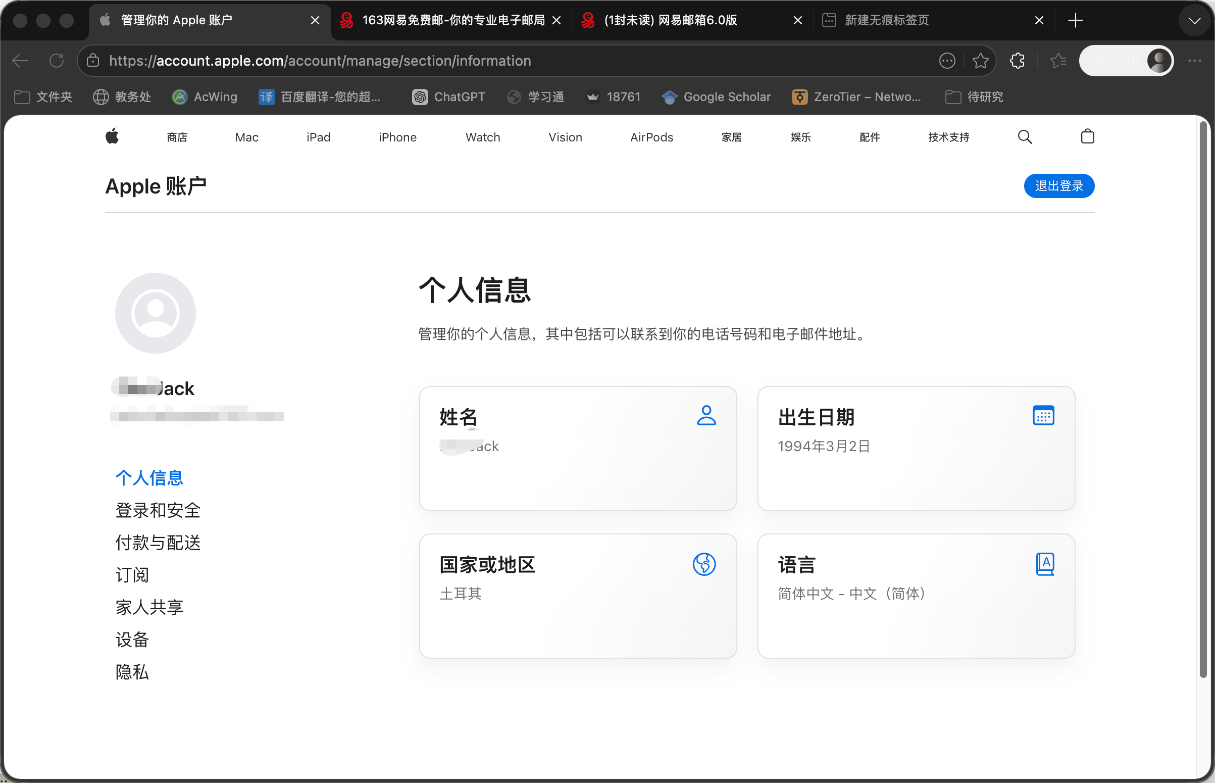 适用场景:先注册一个中国大陆区 Apple ID,然后把账号国家/地区改成土耳其区,用于通过土区 App Store 礼品卡余额订阅 ChatGPT Plus。