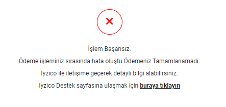 如果验证失败,会出现类似下面的失败提示。Iyzico 支付验证失败一般不会扣款;遇到失败不要连续反复重试,可以换卡、换支付通道,或者稍后再试。