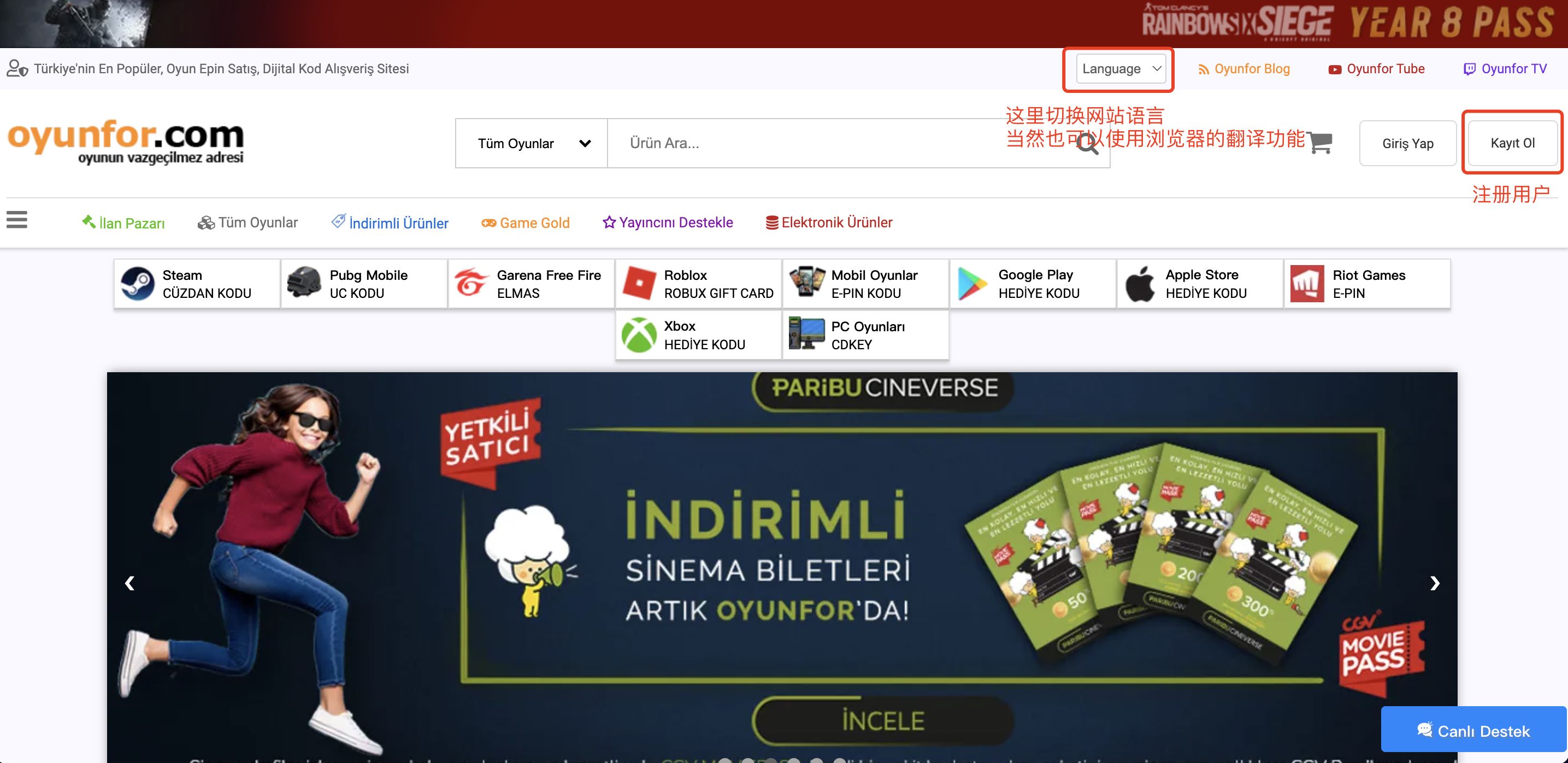 - Oyunfor 先买小额土区礼品卡。