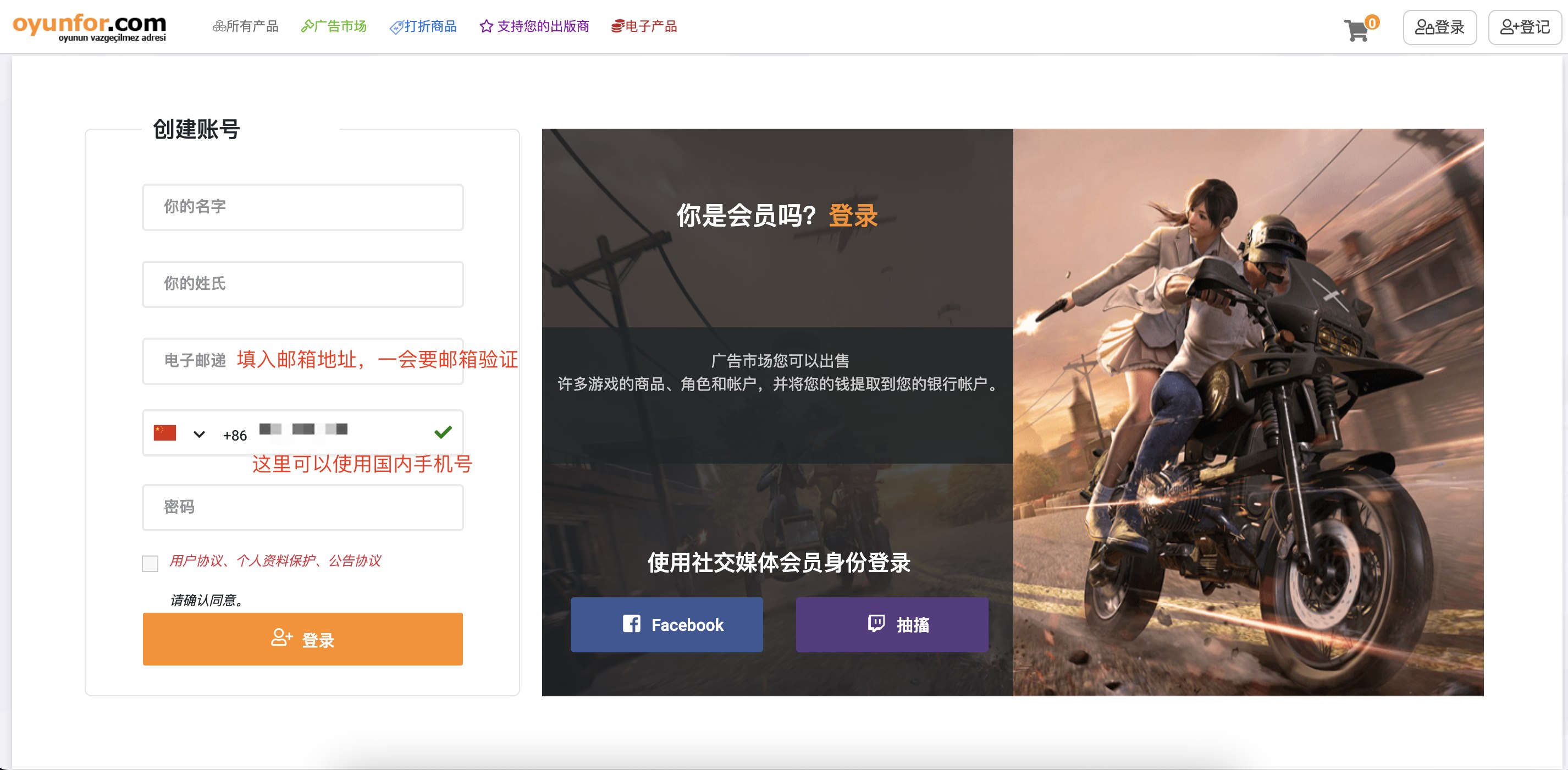 注册并登录 Oyunfor