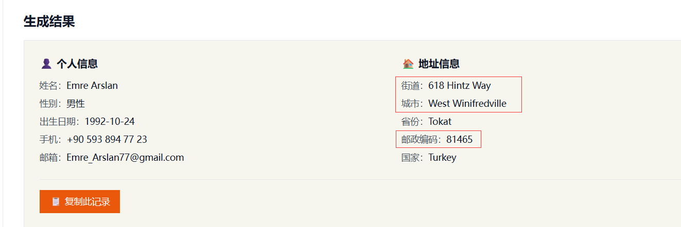 填写账单地址前,可以先打开土耳其地址生成器生成一组地址信息: